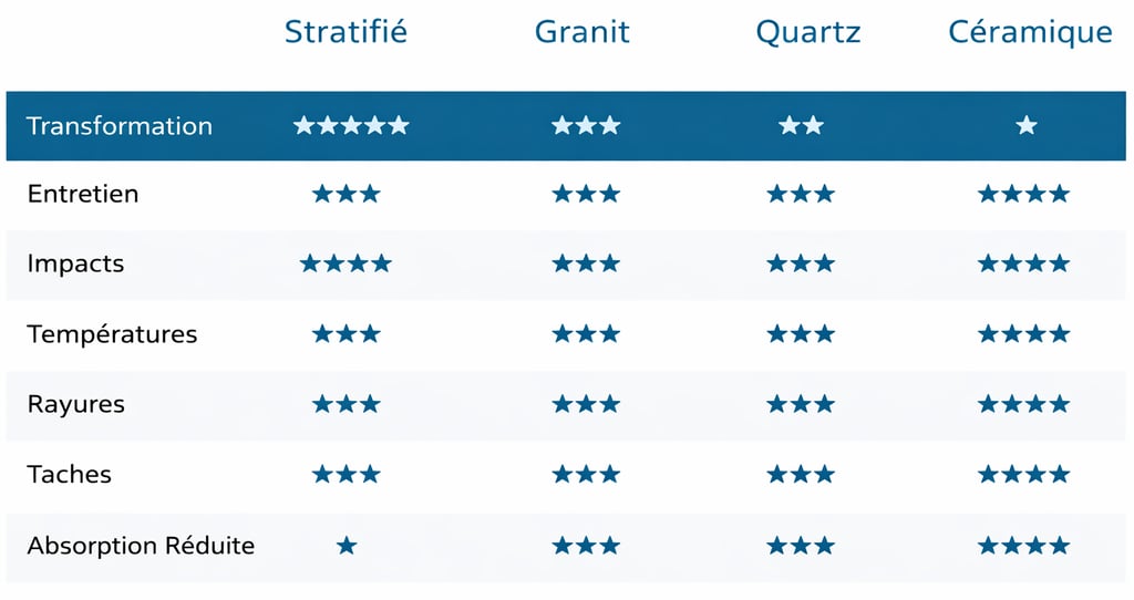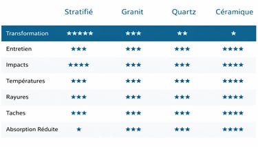 Analyse détaillée des principaux matériaux de surface pour vous aider à choisir la solution la plus adaptée à votre projet.