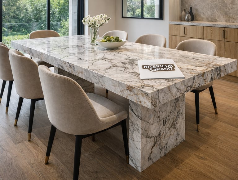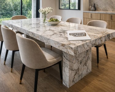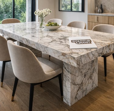Tables de salle à manger, guéridons, plateaux de meubles et créations uniques en granit ou marbre.