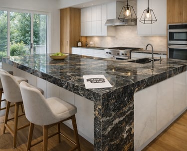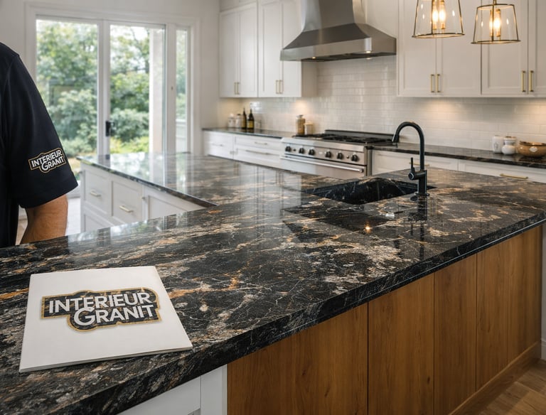 Fabrication et pose de plans de travail, îlots et salles de bain en granit, quartz, céramique et Dekton®.