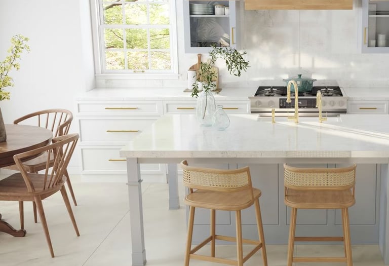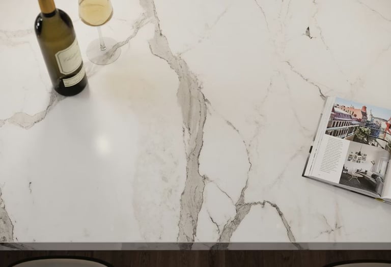 Arga embrasse la texture iconique et la douce chaleur du quartzite Taj Mahal. Le fond doux et crémeux au veinage subtil intensifie sa structure dramatique.
