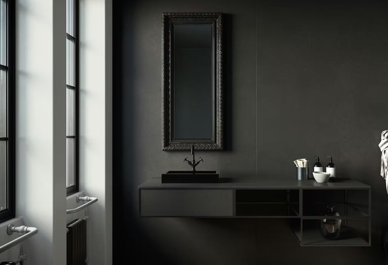 Avec sa structure en granit sombre dans des tons gris et noirs, Eter affiche des contrastes doux, mais avec un esprit radicalement contemporain. Il est idéal pour les espaces à la fois intérieurs et extérieurs.
