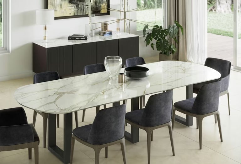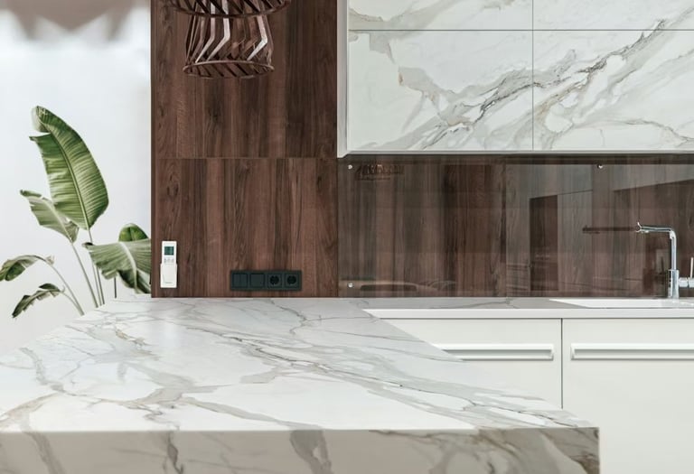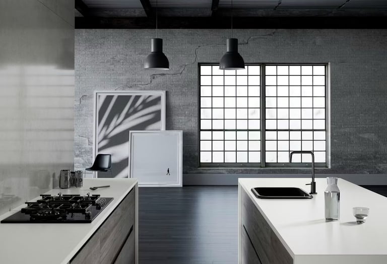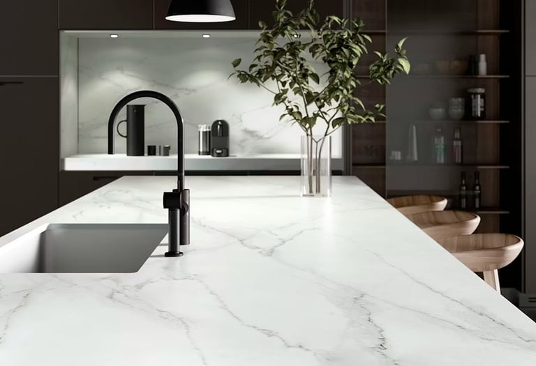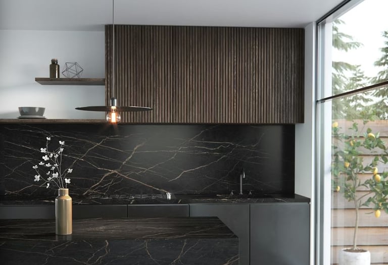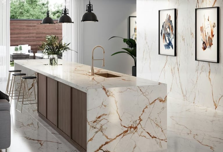 Inspiré également par le quartzite Taj Mahal, Taga offre une interprétation plus moderne pour s'aligner sur les dernières tendances tout en conservant le véritable caractère de la pierre, avec des tons gris et un veinage marbré pour mettre en valeur sa structure.