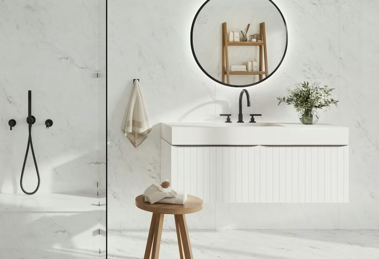 Malibu (poli) s’inspire du sable blanc, des reflets envoûtants du soleil et des vagues qui se brisent sur les rivages de la Californie, rendus par des veines subtiles et délicates sur un fond blanc ivoire