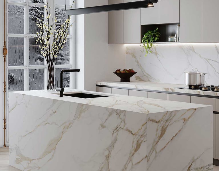 Surface céramique ultra-compacte alliant élégance, résistance et durabilité.