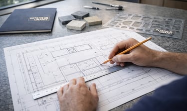 Plans précis soumis à votre validation : dimensions, découpes, emplacements évier et plaque.