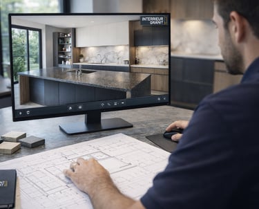 Visualisez votre future cuisine en rendu photoréaliste. Modifications possibles avant fabrication.